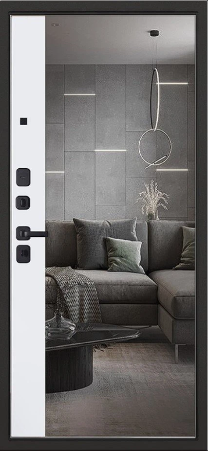 Надежная входная Дверь Scandi с зеркалом премиум класса по цене 40 800 руб. Большая толщина стали защитит от проникновения в ваш дом, квартиру или коттедж. Используется очень качественная фурнитура: замки, цилиндры, ручки, защелки. Покрытие и отделка двери изготовлено под внимательным контролем производителя. Дверь имеет долгий срок службы и гарантию.
