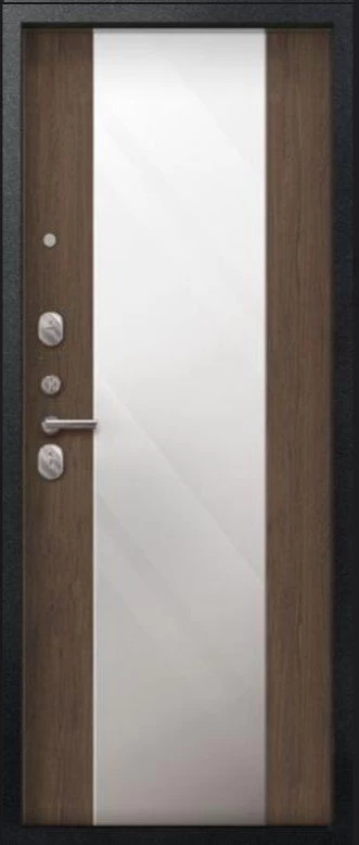 Надежная входная Дверь V-04 Черный муар - Миндаль Зеркало премиум класса по цене 38 100 руб. Большая толщина стали защитит от проникновения в ваш дом, квартиру или коттедж. Используется очень качественная фурнитура: замки, цилиндры, ручки, защелки. Покрытие и отделка двери изготовлено под внимательным контролем производителя. Дверь имеет долгий срок службы и гарантию.